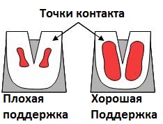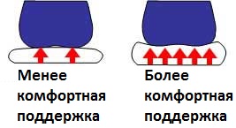 Поддержка это область сидения на которую распределяется вес ездока. При распределении веса на бОльшую площадь боль уменьшается в тех местах где ягодицы обычно несут бОльщую нагрузку. Это особенно заметно в зоне седалищного горба. БОльшая поддержка является ключевым аспектом в процессе создания комфортного сидения, особенно для длинных поездок. На рисунках ниже показано поддержка распределить вес что бы сделать сидение более комфортным.