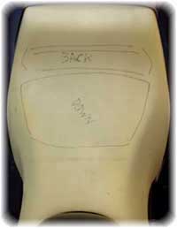 Возможно вам будет легче если вы отметите на стандартном сидении те зоны, которые вы хотите сделать тоньше. Но помните, что удалить пену гораздо проще чем добавить ее обратно. Потому работайте терпеливо и осторожно.