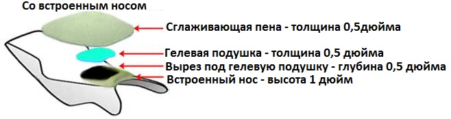 Вы можете попробовать реализовать некоторые переделки описанные на этом сайте в том виде в котором они представлены, или можете попробовать взять лишь идею описанную здесь и реализовать ее на иной лад что бы результат был наилучшим именно для вас. Например вместо двух слоев 1 дюймовой пены для создания носа использовать лишь один слой. Но учитывайте при этом, что толщина пены может варьироваться от 0,5 дюйма до 4 дюймов, но при этом пену толщиной в 1 дюйм гораздо легче резать и шлифовать. И также не забывайте, что вы всегда можете склеить куски пены разной толщины между собой для получения пены именно той толщины которая вам необходима.