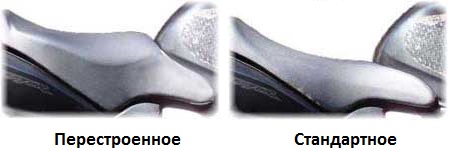 Вышеприведенные фотографии стандартных и перестроенных сидений от Corbin для Hayabusa наглядно показывают разницу в поддержке между стандартным и более комфортабельным переделанным сидением. На фотографиях ниже приведены переделанное и стандартное сидение Suzuki GSXR600. Переделанное сидение намного комфортнее а также позволяет водителю свободно перемещаться в седле при движении по извилистым дорогам.