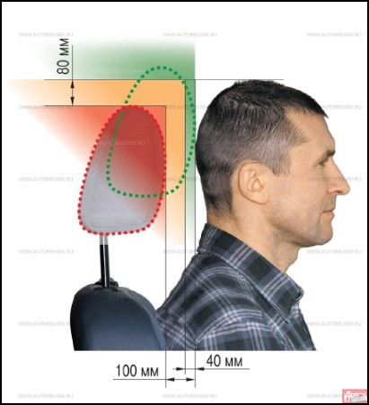 Joonis 9.[40] Turvahäll ja selle alus Isofix kinnitusega 2.3.7 PeatugiTänavapildis võib iga päev kohata autojuhte kes täielikult ignoreerivad tehase poolt auto istmetesse paigaldatud peatugesid. Tihti on tagumiste istmete peatoed üldse eemaldatud taha suunas parema vaatevälja saavutamise eesmärgil. Selline juhtide käitumine on tavaliselt tingitud teadmatusest milline on peatoe eesmärk ning sellest, et alahinnatakse sõidukile tagant otsasõidu puhul saadavate kaelavigastuste tõsidust. Kuid kaelavigastuste ravimisele, mis tihti osutub väga pikaks ja kalliks, kulutatakse vaid Rootsis mitu sada miljonit eurot aastas[41]. Peatugi on peamine tagant otsasõidu puhul kaelavigastusi vähendav element autos, kuid ka parim peatugi suudab kaitset pakkuda vaid juhul kui see on õigesti reguleeritud. EuroNCAP`i (Euroopa rahvusvaheline organisatsioon mis tegeleb sõiduautode turvalisuse uurimisega) spetsialistide sõnade kohaselt parima kaitse tagamiseks peab peatoe ülemine äär olema peast kõrgemal või vähemalt sellega ühel tasemel ning olema mitte kaugemal kui 4 cm kaugusel kuklast. Joonisel 10 on illustreeritud peatoe õige, halb ja vale asendid. Parima kaitse tagab rohelises piirkonnas asuv peatugi ning halvima, punases piirkonnas asuv peatugi (peatugi on peast vähemalt 80mm madalamal ja vähemalt 100mm kaugusel kuklast).[42]